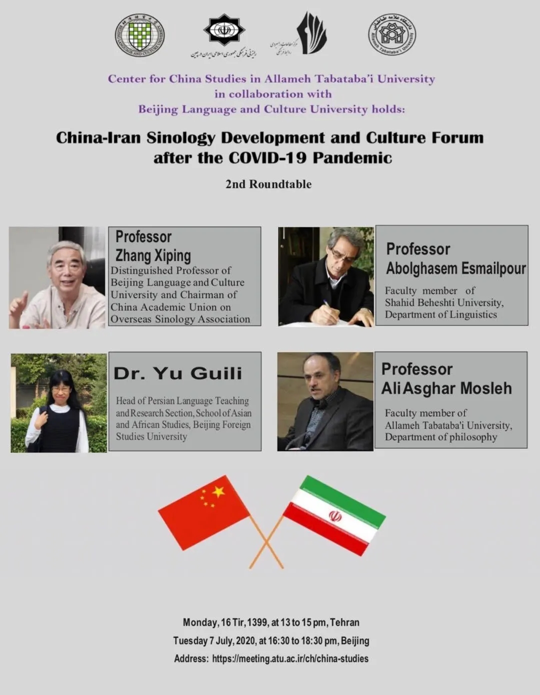 中国-伊朗汉学与文化发展论坛(第二次会议)将于2020年7月7日下午4:30(北京时间)以视频会议形式举行,具体安排如下: