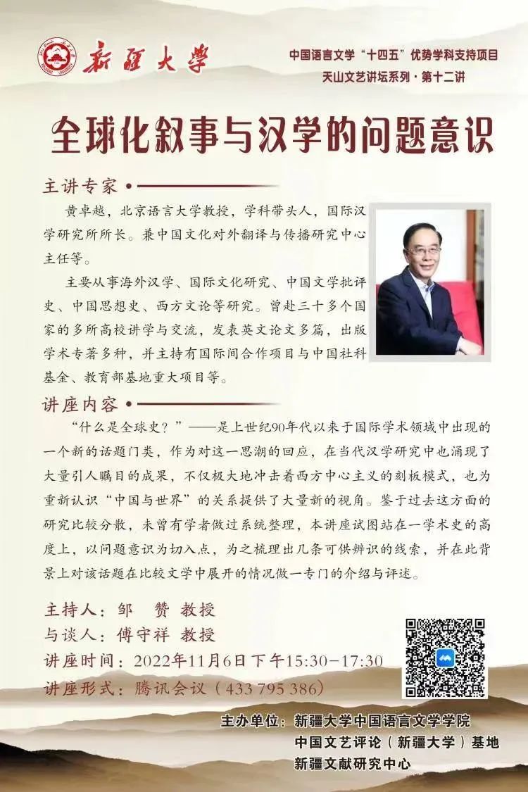 “什么是全球史?”——是上世纪90年代以来于国际学术领域中出现的一个新的话题门类,作为对这一思潮的回应,在当代汉学研究中也涌现了大量引人瞩目的成果,不仅极大地冲击着西方中心主义的刻板模式,也为重新认识“中国与世界”的关系提供了大量新的视角。鉴于过去这方面的研究比较分散,未曾有学者做过系统整理。本讲座试图站在一学术史的高度上,以问题意识为切入点,为之梳理出几条可供辨识的线索,并在此背景上对该话题在比较文学中展开的情况做一专门的介绍与评述。