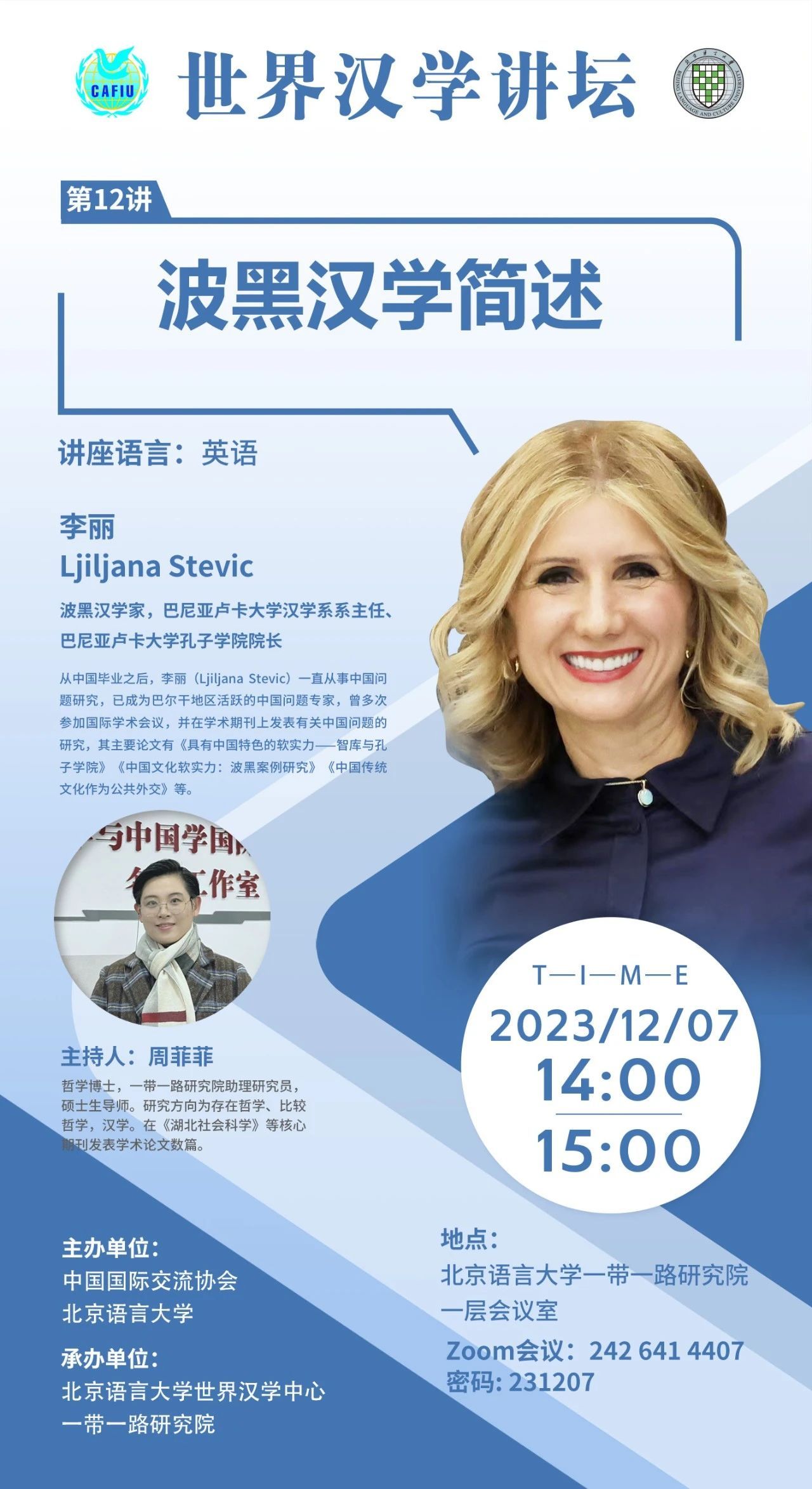 世界汉学讲坛是由中国国际交流协会与北京语言大学共同构建的高端学术对话交流机制,旨在充分发挥汉学家的桥梁作用,搭建更多沟通交流的平台,开展更多平等互信的对话,不断增进理解、凝聚共识,为中国与世界的互鉴共赢贡献智慧与力量。
