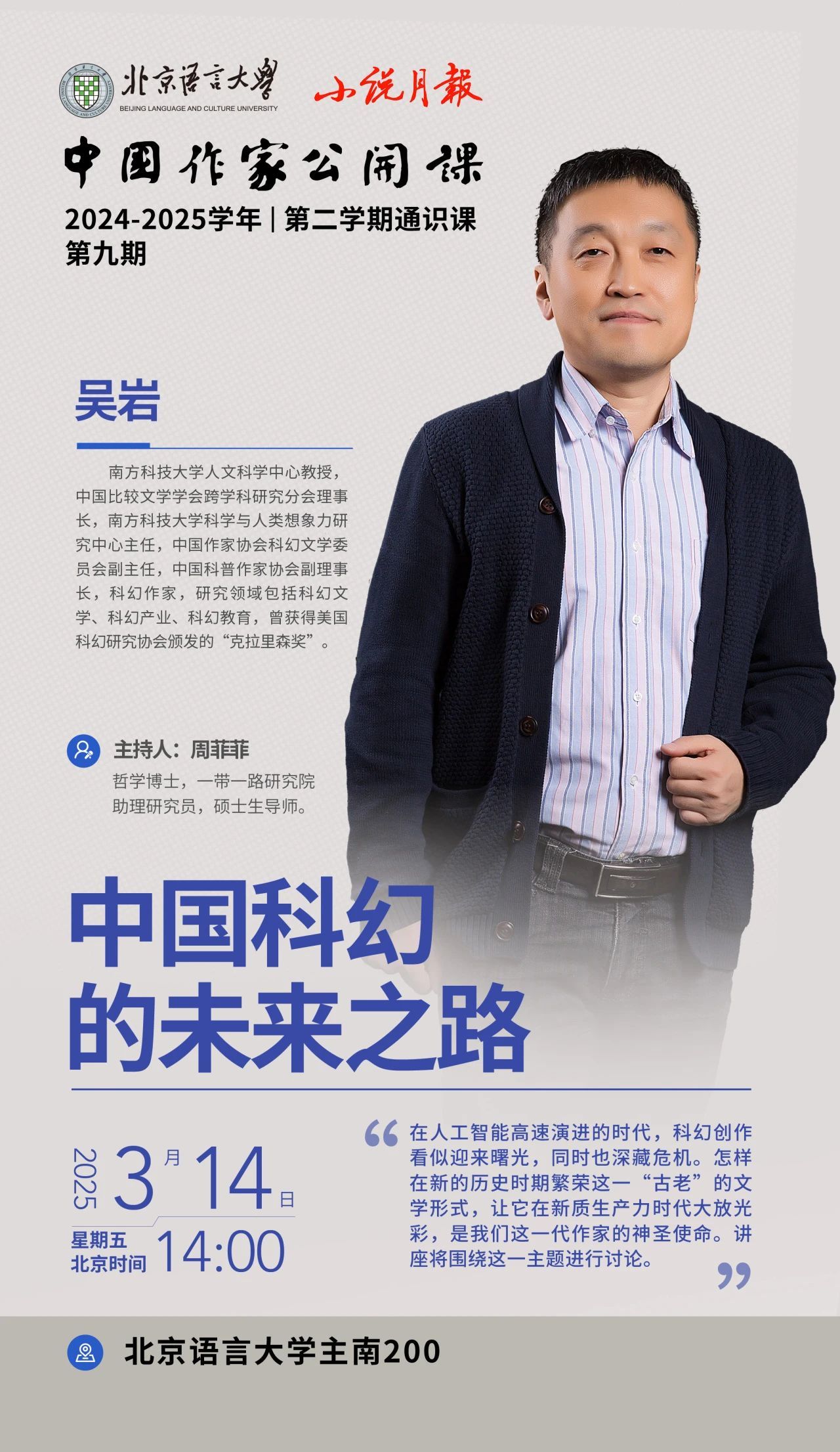 内容:在人工智能高速演进的时代,科幻创作看似迎来曙光,同时也深藏危机。怎样在新的历史时期繁荣这一“古老”的文学形式,让它在新质生产力时代大放光彩,是我们这一代作家的神圣使命。讲座将围绕这一主题进行讨论。