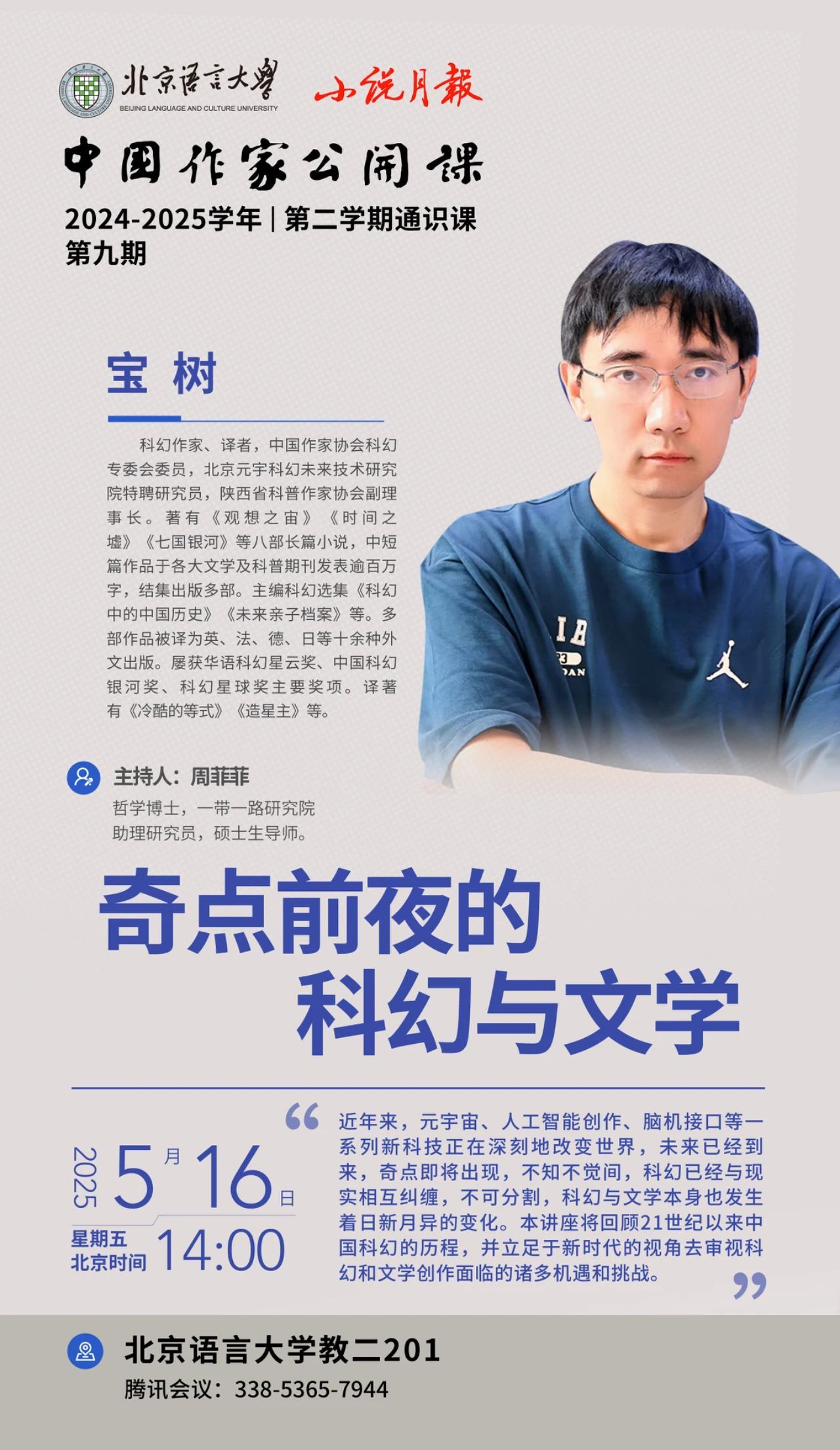 内容:近年来,元宇宙、人工智能创作、脑机接口等一系列新科技正在深刻地改变世界,未来已经到来,奇点即将出现,不知不觉间,科幻已经与现实相互纠缠,不可分割,科幻与文学本身也发生着日新月异的变化。本讲座将回顾21世纪以来中国科幻的历程,并立足于新时代的视角去审视科幻和文学创作面临的诸多机遇和挑战。