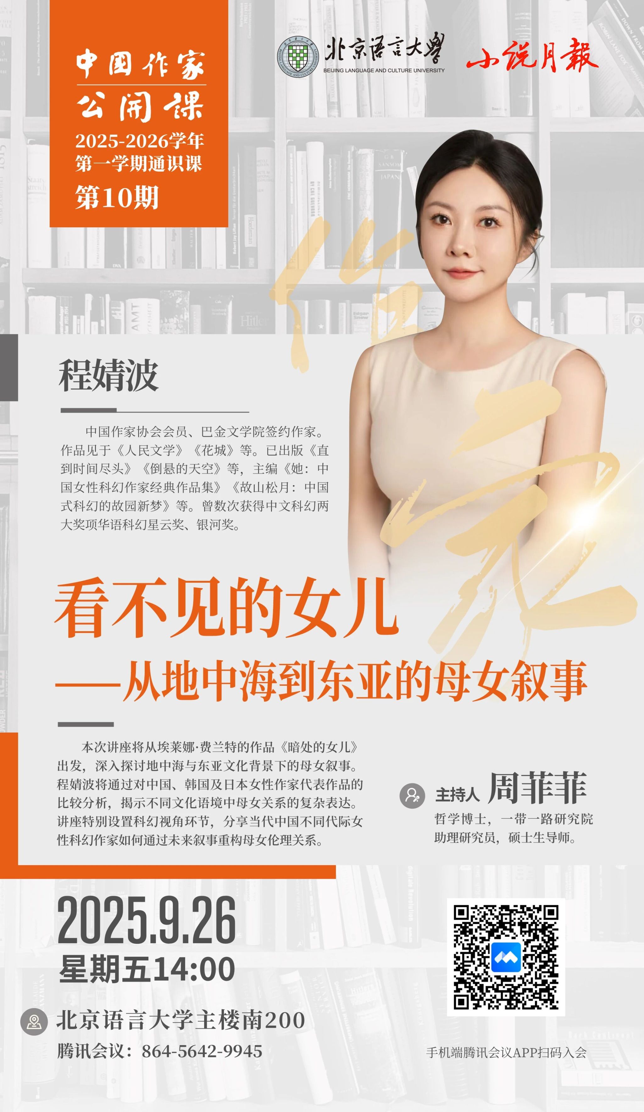 程婧波作为《她:中国女性科幻作家作品集》主编,长期关注女性科幻创作与性别叙事研究,本次讲座将展现其在该领域的独特见解。百花文艺出版社副总编辑、《小说月报》《科幻立方》执行主编徐福伟将出席活动,与线上线下师生共同参与这场跨文化对话。